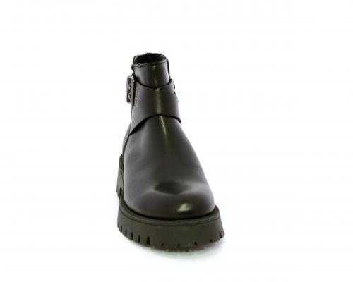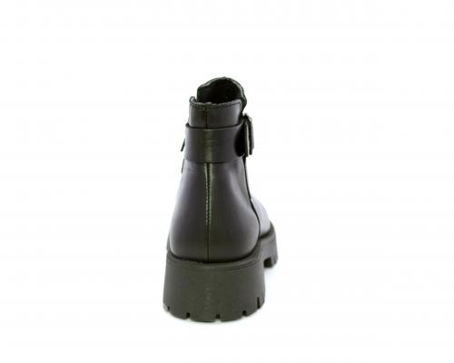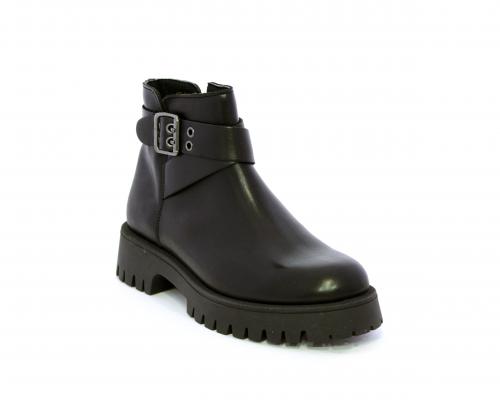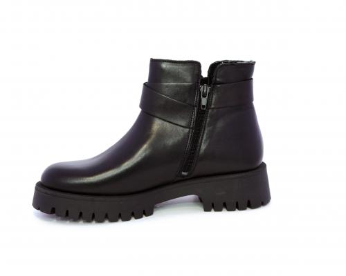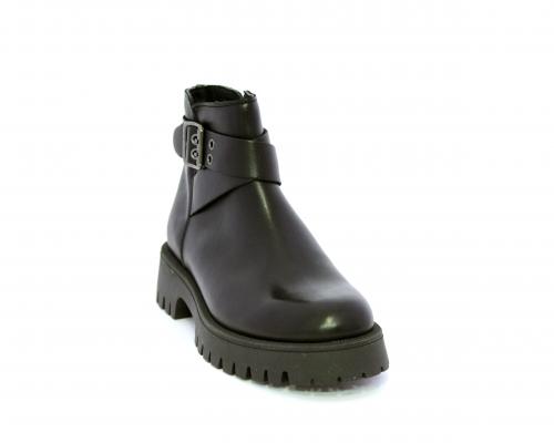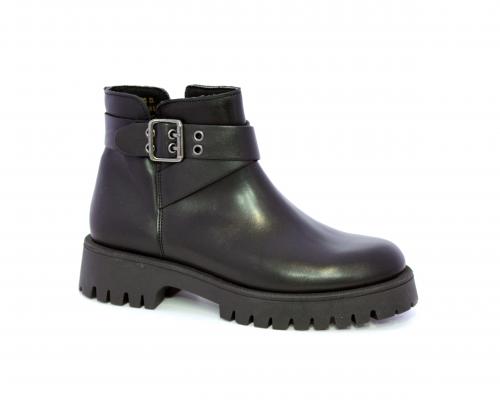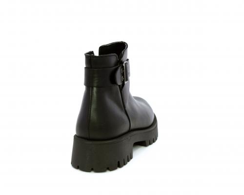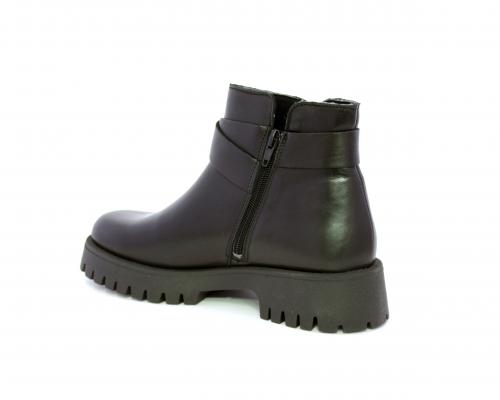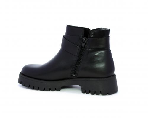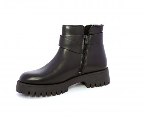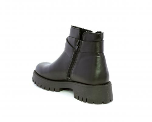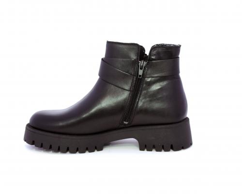 Tronchetto con tacco e plateaux in gomma, tomaia in pelle con chiusura laterale e fibbia laterale regolabile, sottopiede e fodera interna in tessuto, fusbet anatomico con memory.