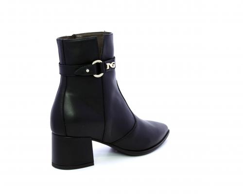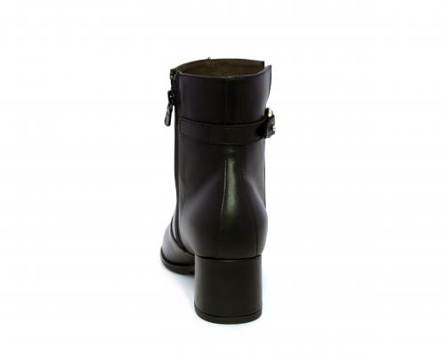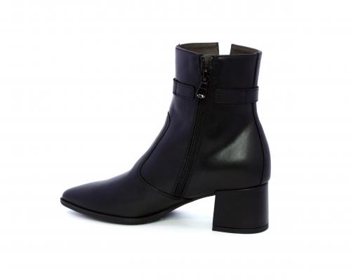Tronchetto con chiusura laterale, fondo in gomma, tacco largo rivestito in pelle, tomaia in pelle con fibbia laterale color oro, sottopiede e fodera interna in pelle, fusbet anatomico con memory.