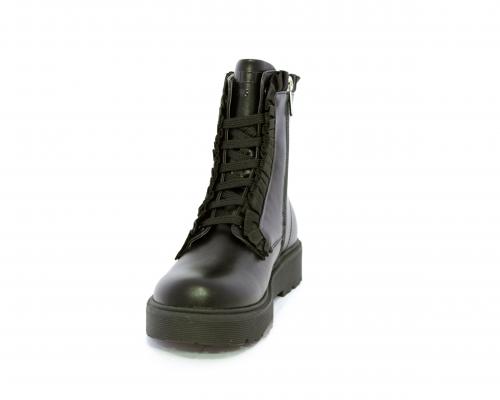 Anfibio con lacci e chiusura laterale, fondo in gomma con medaglia in acciaio con logo, tomaia in pelle con accessori in acciaio, sottopiede in pelle, fodera interna in tessuto, fusbet anatomico.