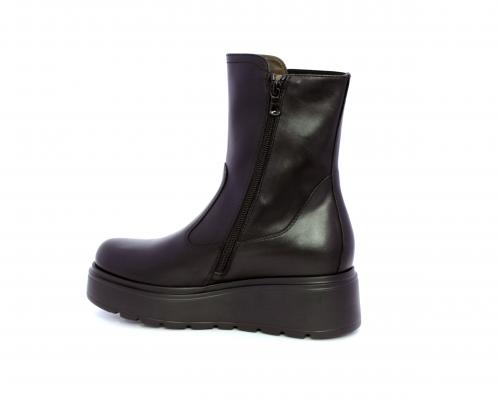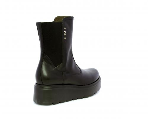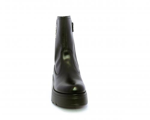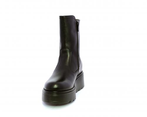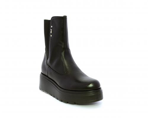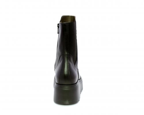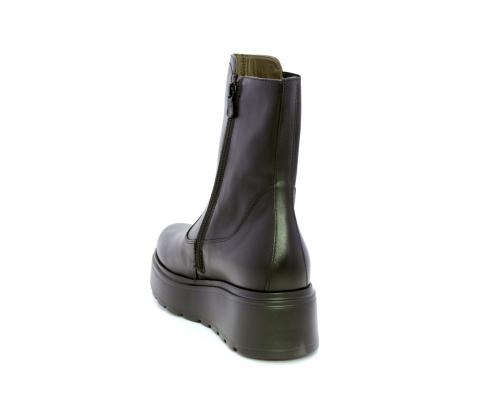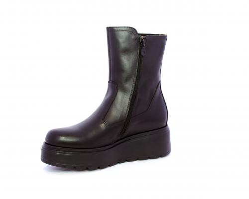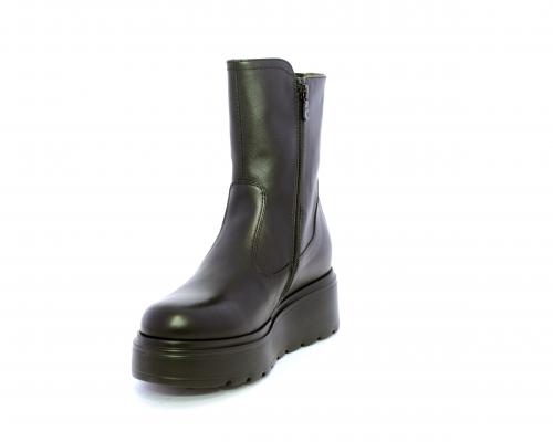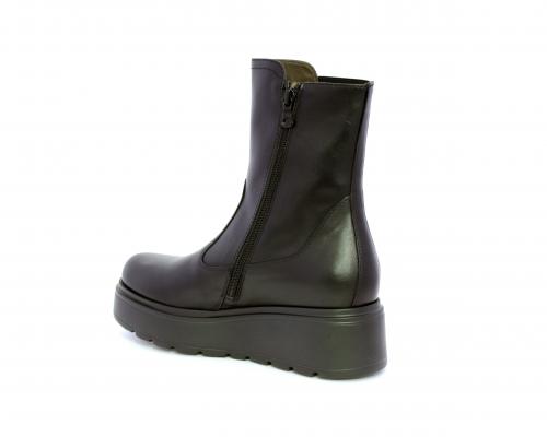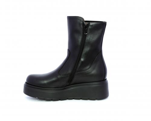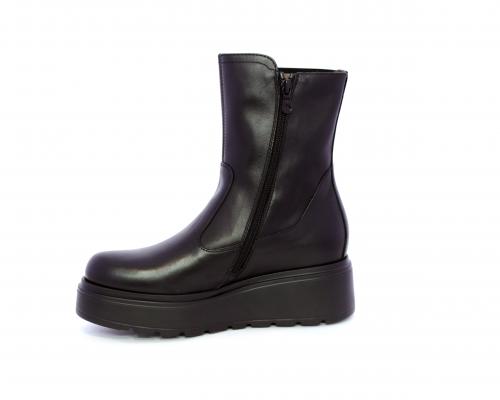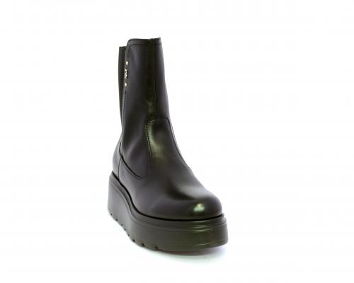 Tronchetto con zeppa e plateaux in gomma, chiusura laterale, tomaia in pelle con parte laterale in tessuto elasticizzato, sottopiede in tessuto, fodera interna in pelle,fusbet estraibile in poliuretano Dry-Go, con doppia capacità sia di assorbire il sudore sia di asciugarsi rapidamente, inoltre ha anche la funzione MEMORY che si modella al piede garantendo confort e benessere.