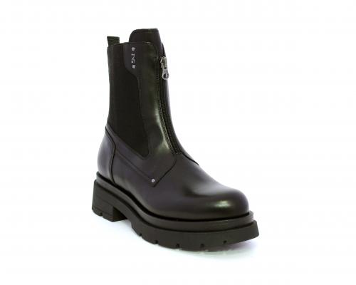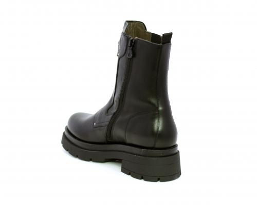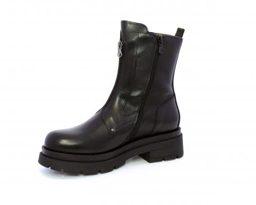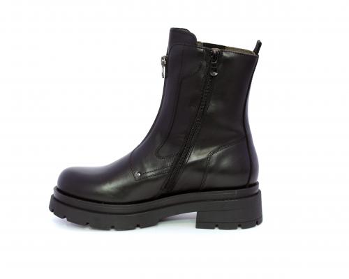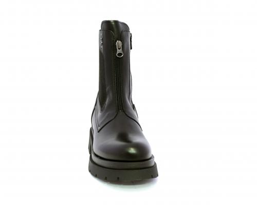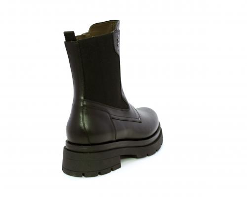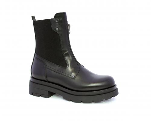 Tronchetto con chiusura laterale, tacco e plateaux in gomma, tomaia in pelle con parte laterale in tessuto elasticizzato e chiusura nella parte anteriore solo estetica, sottopiede e fodera interna in pelle,fusbet con MEMORY che si modella al piede garantendo confort e benessere.