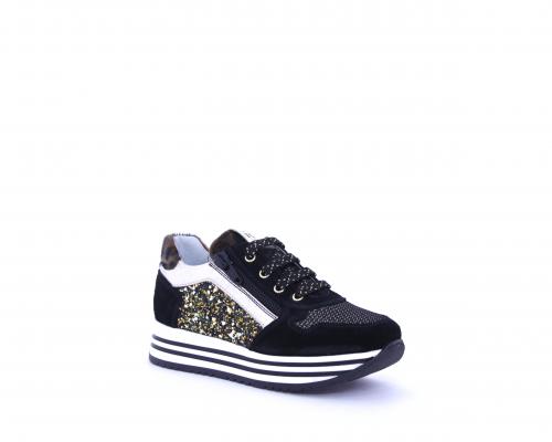 Sneaker allacciata con zip laterale, fodera e sottopiede in pelle