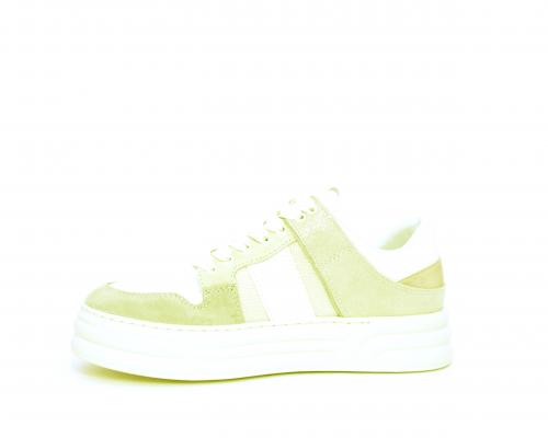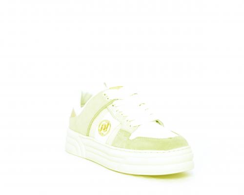 Sneakers con lacci, con platform, tomaia in pelle con inserti in camoscio e tessuto, logo color oro, sottopiede e fodera in tessuto, fusbet estraibile