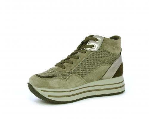 Sneakers alta con lacci, sottopiede in pelle, fodera interna in tessuto, fusbet estraibile con memory foam