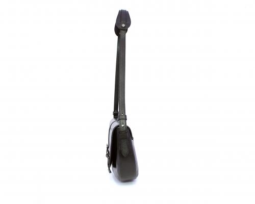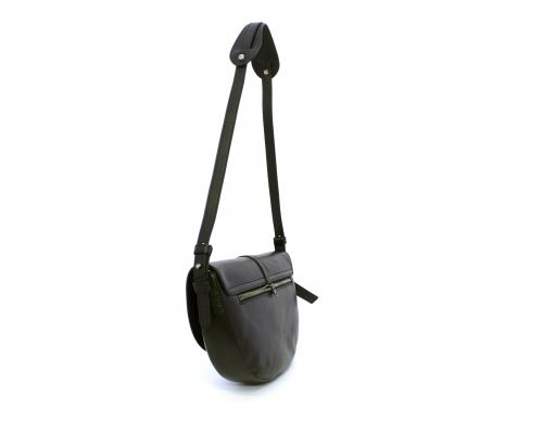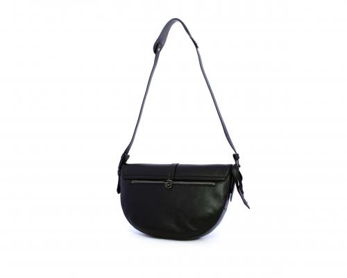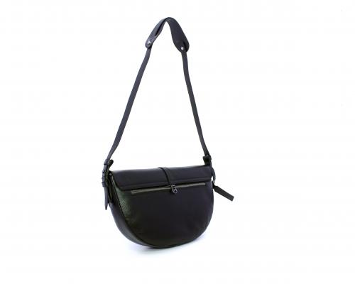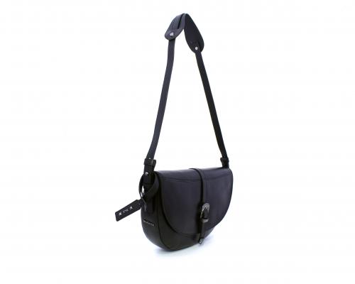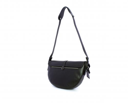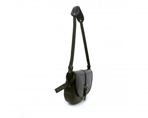 Borsa a froma di mezza-luna, tracolla lunga in pelle regolabile, fibbia chiusa con clip, fodera interna in tessuto, all'interno doppio taschino uno aperto e uno chiuso.