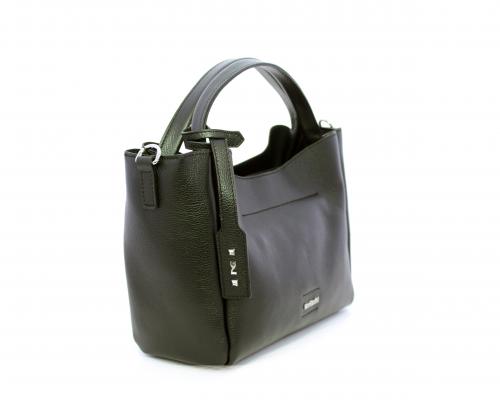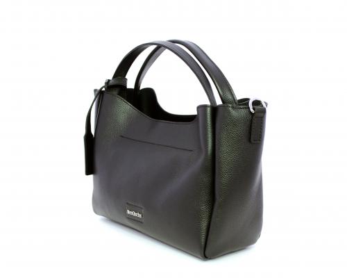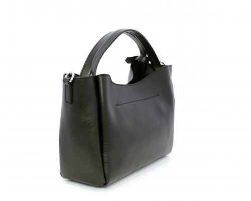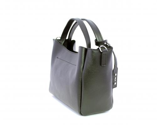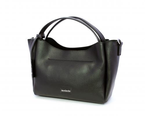 Borsa in pelle, forma rettangolare, doppio manico corto in pelle e possibilità di aggiungere la tracolla regolabile in pelle, rifiniture in acciaio, chiusura generale della borsa con cerniera, all'interno pochette in pelle che può essere staccata.