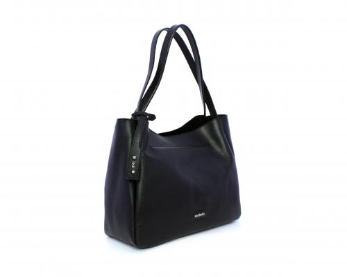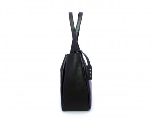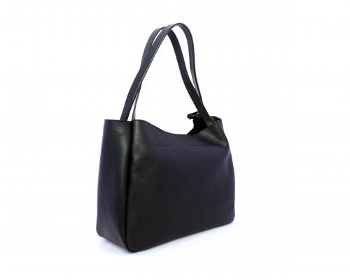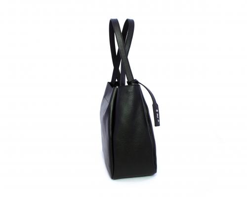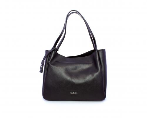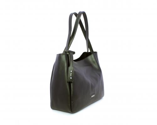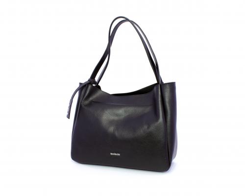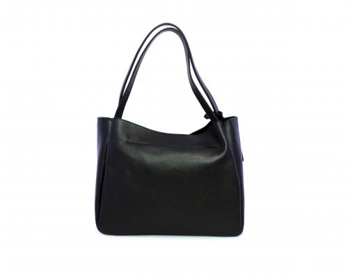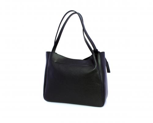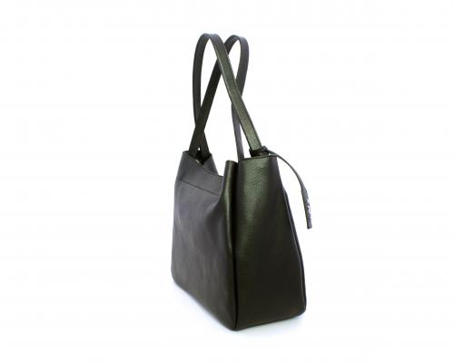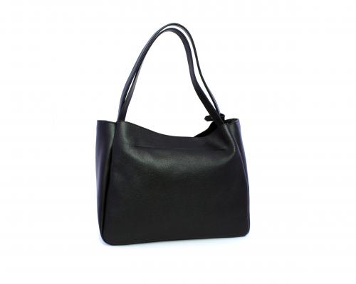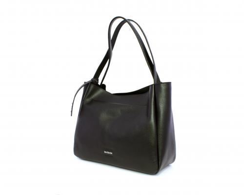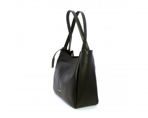 Borsa monospalla in pelle, forma rettangolare, doppio manico lungo in pelle, rifiniture in acciaio, chiusura generale della borsa con cerniera, all'interno pochette in pelle che può essere anche staccata.