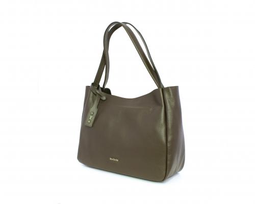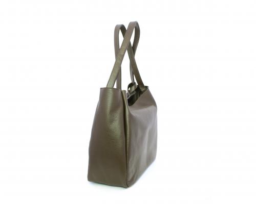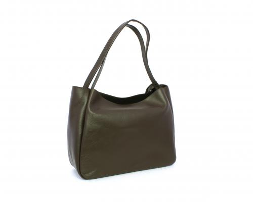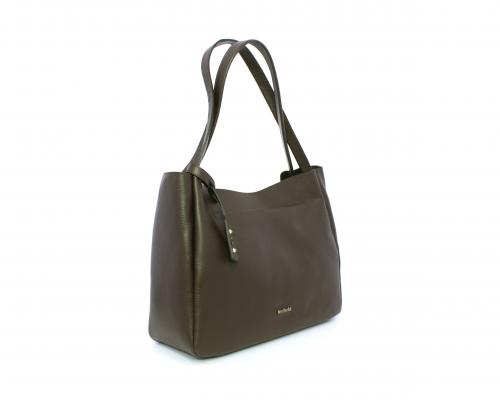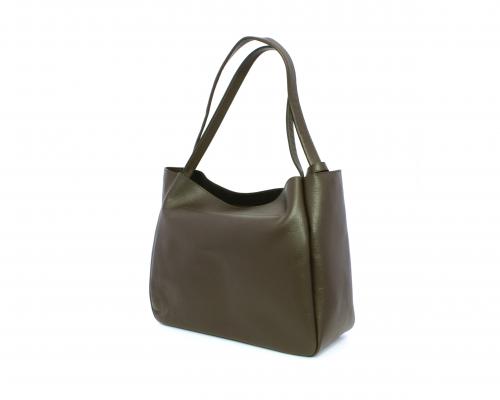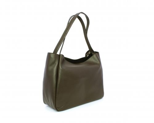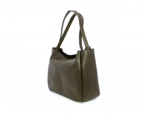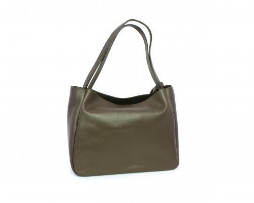 Borsa monospalla in pelle, forma rettangolare, doppio manico lungo in pelle, rifiniture in acciaio, chiusura generale della borsa con cerniera, all'interno pochette in pelle che può essere anche staccata.