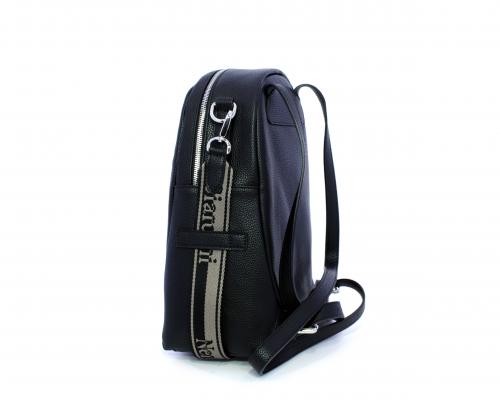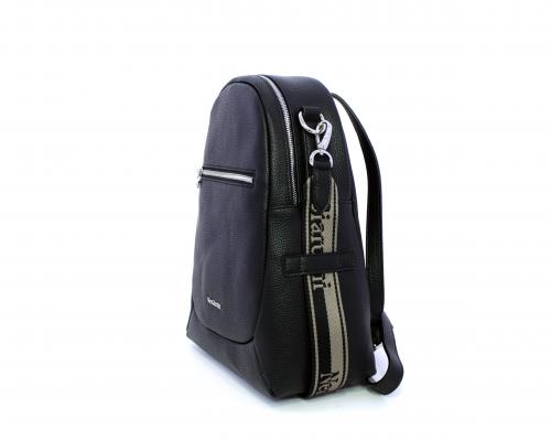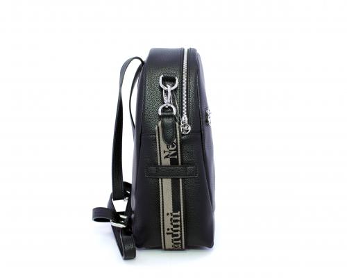 Zaino in pelle, bretelle in pelle regolabile, intorno alla zaino tracolla in tessuto removibile che può essere usata per mettere lo zaino monospalla, rifiniture in acciaio, chiusura generale con cerniera e taschino con cerniera nella parte anteriore, fodera interna in tessuto, all'interno doppio taschino uno aperto e uno chiuso.