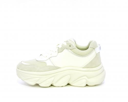 Sneakers con lacci, platform in gomma, tomaia in pelle e nabuk, sottopiede e fodera interna in tessuto, fusbet estraibile con memory.