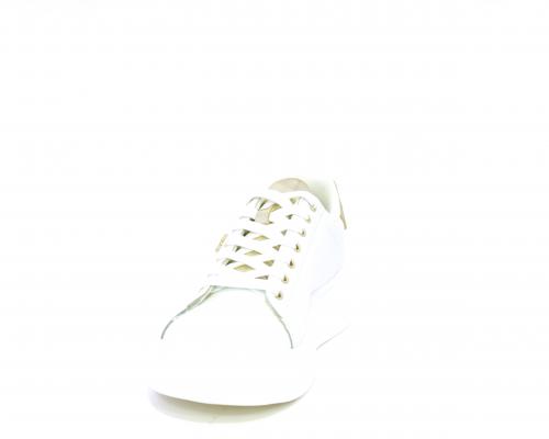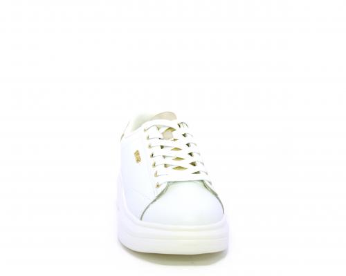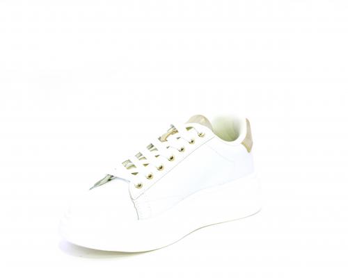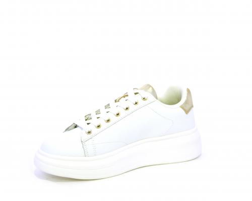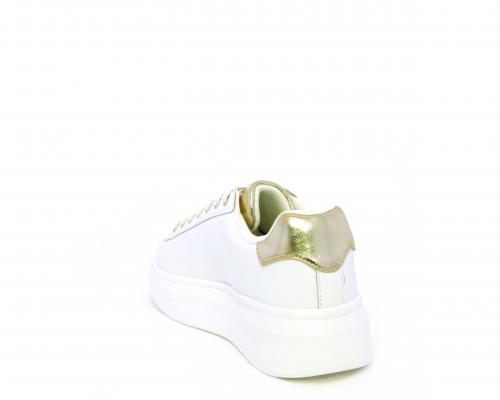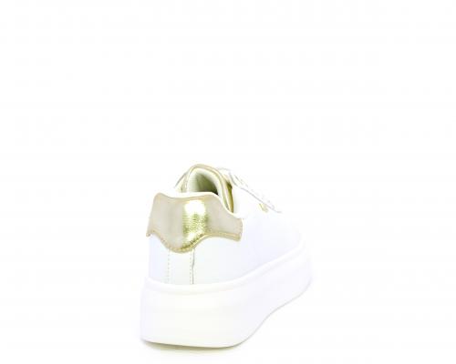 Sneakers con lacci, platform in gomma, tomaia in pelle con inserto oro dietro al tallone, sottopiede e fodera interna in tessuto, fusbet estraibile con memory.