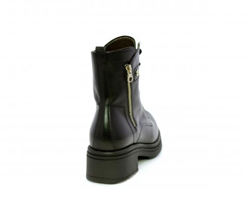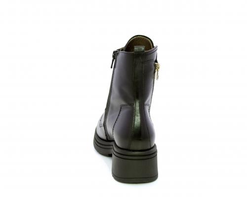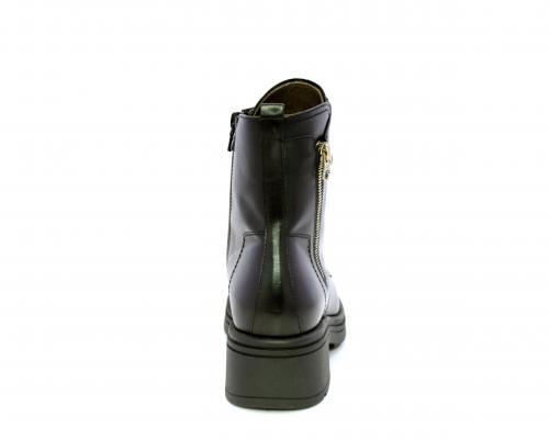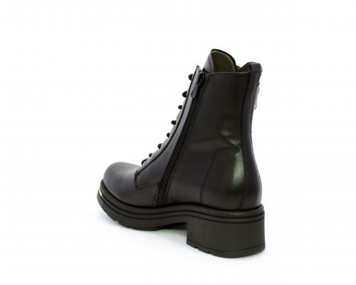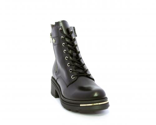 Tronchetto con lacci e chiusura laterale, tacco e plateaux in gomma, tomaia in pelle con rifitiniture oro, sottopiede in tessuto, fodera interna in pelle,fusbet estraibile in poliuretano Dry-Go, con doppia capacità sia di assorbire il sudore sia di asciugarsi rapidamente, inoltre ha la funzione MEMORY che si modella al piede garantendo confort e benessere.