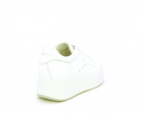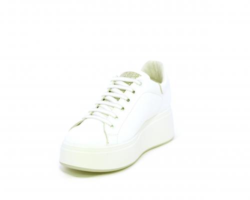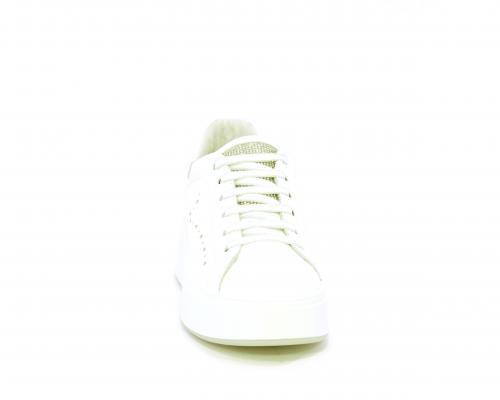 Sneakers con lacci, platfoarm in gomma bianco, tomaia in pelle e fascia di brillantini sulla linguetta della calzatura, sottopiede e fodera interna in pelle, fusbet estraibile.