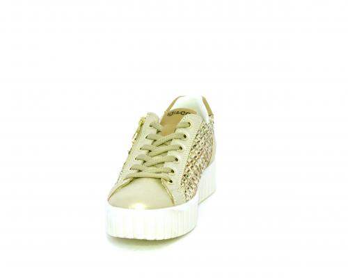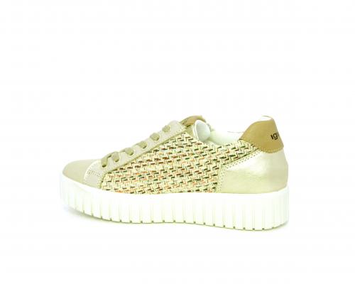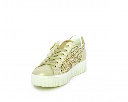 Sneakers con lacci e chiusura laterale per facilitare la calzata, platfoarm in gomma, tomaia in pelle e parte in tessuto, sottopiede in pelle, fodera interna in tessuro, fusbet estraibile traspirante.