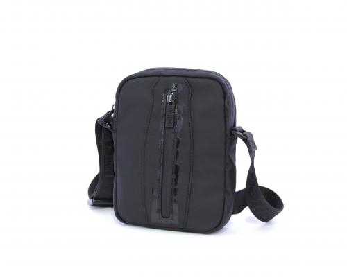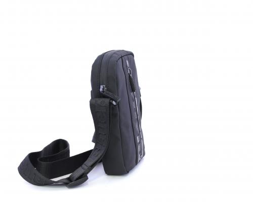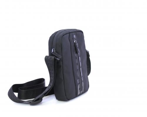 Tracolla in tessuto, taschino verticale nella parte anteriore con stampa con logo, chiusura generale con cerniera, tracolla regolabile in tessuto con logo inciso.