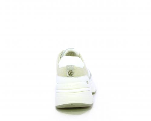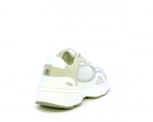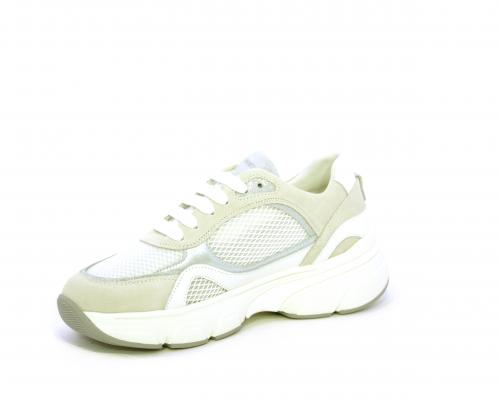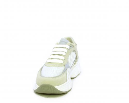 Sneakers con doppio laccio di ricambio, zeppa e plateaux in gomma bianca, tomaia in suede con parti in tessuto microforato, sottopiede in pelle, fodera interna in tessuto, fusbet estraibile con memory per donare confort durante la camminata.