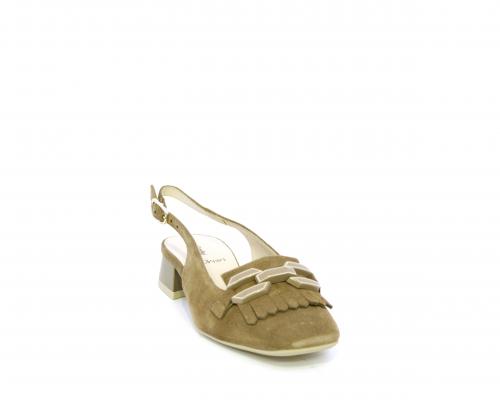 Scarpa modello chanel, fondo in gomma, tacco largo, tomaia in suede fibbia bicolor e lateralmente fibbia regolabile, sottopiede e fodera interna in pelle, fusbet dotato di memory ed elevato assorbimento degli urti donando confort e benessere.