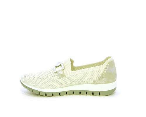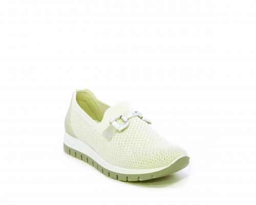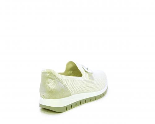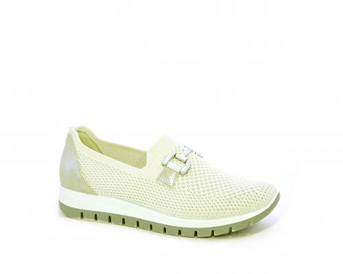Sneakers senza lacci, fondo in gomma, tomaia in tessuto elasticizzato, sottopiede in pelle, fusbet estraibile.