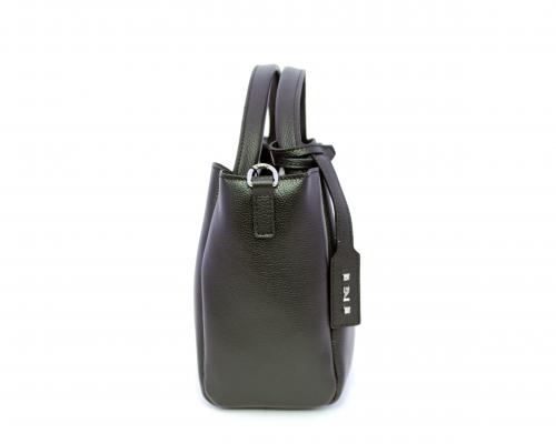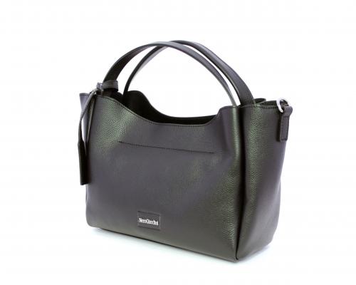 Borsa in pelle, forma rettangolare, doppio manico corto in pelle e possibilità di aggiungere la tracolla regolabile in pelle, rifiniture in acciaio, chiusura generale della borsa con cerniera, all'interno pochette in pelle che può essere staccata.
