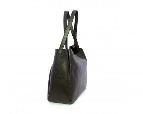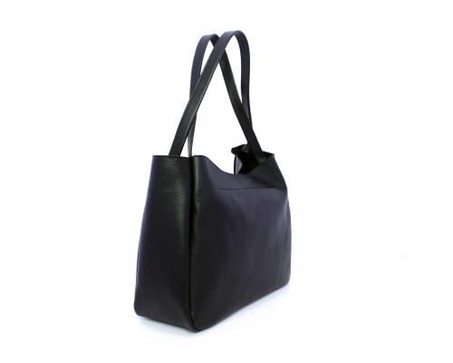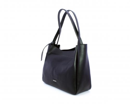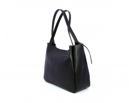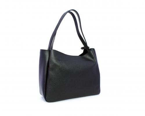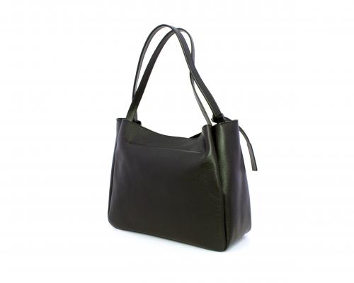 Borsa monospalla in pelle, forma rettangolare, doppio manico lungo in pelle, rifiniture in acciaio, chiusura generale della borsa con cerniera, all'interno pochette in pelle che può essere anche staccata.