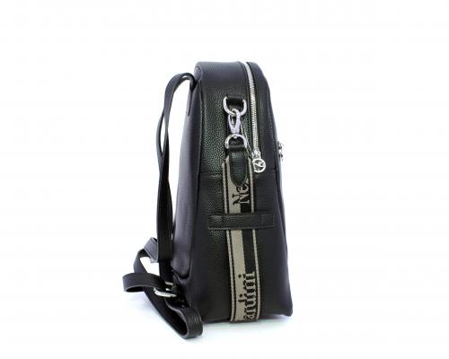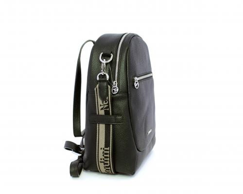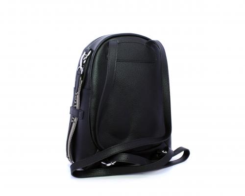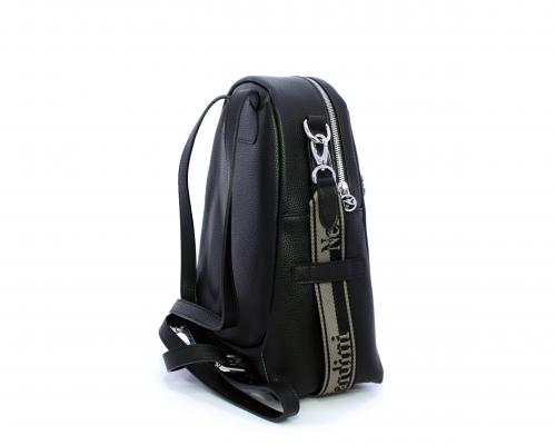 Zaino in pelle, bretelle in pelle regolabile, intorno alla zaino tracolla in tessuto removibile che può essere usata per mettere lo zaino monospalla, rifiniture in acciaio, chiusura generale con cerniera e taschino con cerniera nella parte anteriore, fodera interna in tessuto, all'interno doppio taschino uno aperto e uno chiuso.