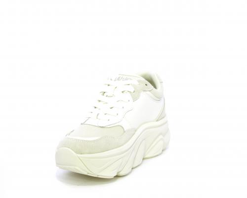 Sneakers con lacci, platform in gomma, tomaia in pelle e nabuk, sottopiede e fodera interna in tessuto, fusbet estraibile con memory.