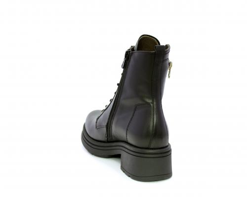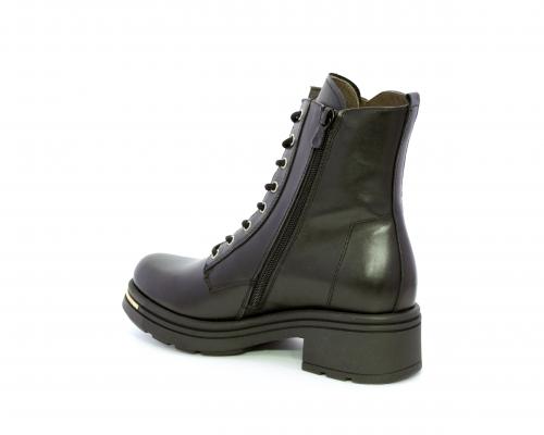 Tronchetto con lacci e chiusura laterale, tacco e plateaux in gomma, tomaia in pelle con rifitiniture oro, sottopiede in tessuto, fodera interna in pelle,fusbet estraibile in poliuretano Dry-Go, con doppia capacità sia di assorbire il sudore sia di asciugarsi rapidamente, inoltre ha la funzione MEMORY che si modella al piede garantendo confort e benessere.