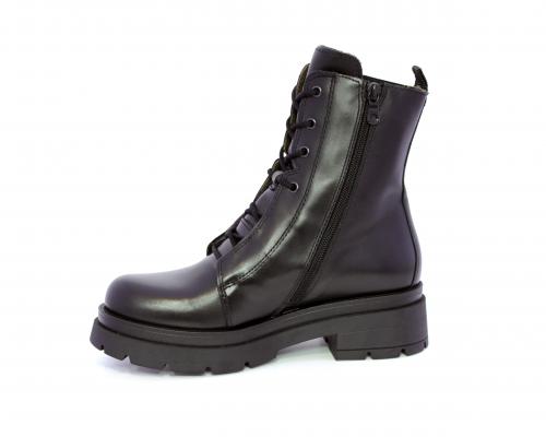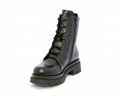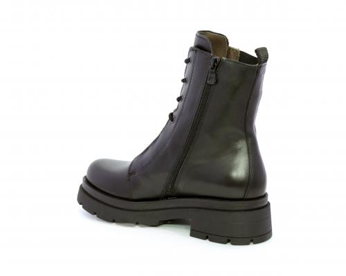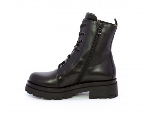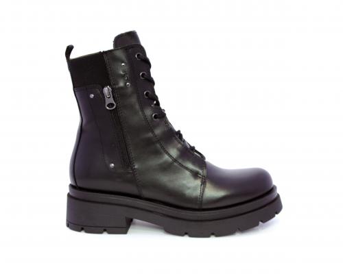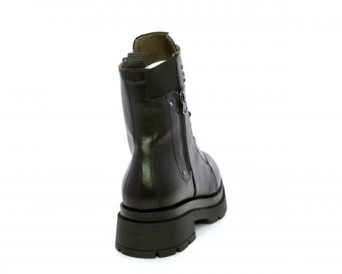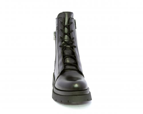 Tronchetto con lacci e chiusura laterale, tacco e plateaux in gomma, tomaia in pelle con rifitiniture in acciaio ed elastico laterale intorno alla caviglia, sottopiede e fodera interna in pelle,fusbet con MEMORY che si modella al piede garantendo confort e benessere.