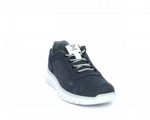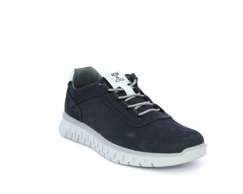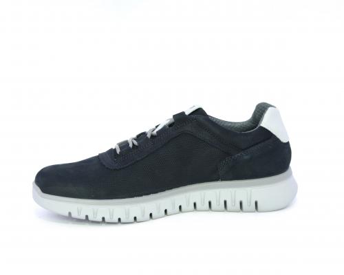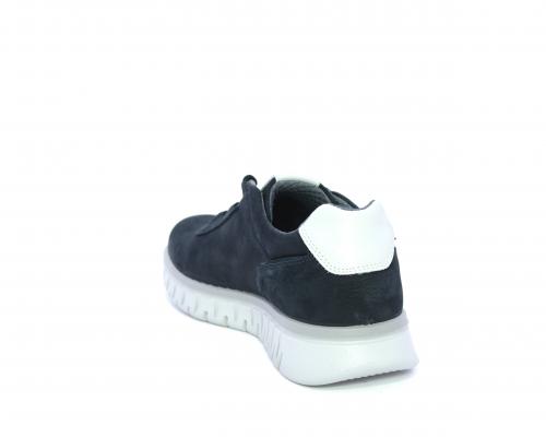 Sneakers con lacci, fondo in gomma grigio, tomaia in nabuk e parte in pelle bianca dietro al tallone, sottopiede in pelle, fodera interna in tesuto, fusbet estraibile con memory foam che attenua i micro-impatti al camminare.
