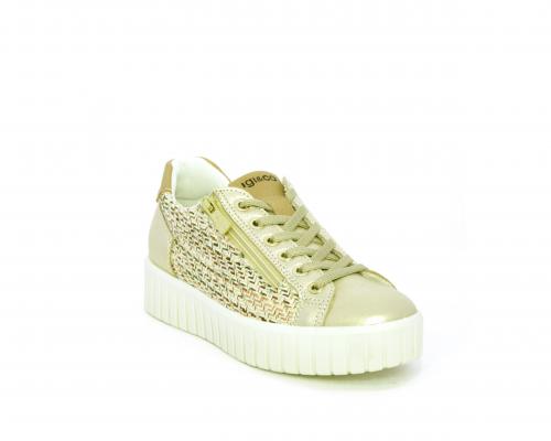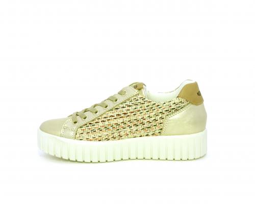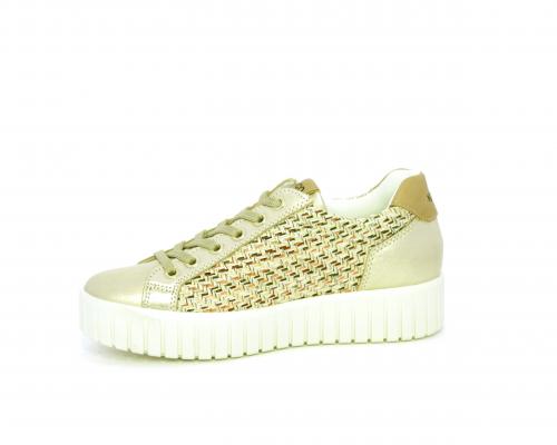 Sneakers con lacci e chiusura laterale per facilitare la calzata, platfoarm in gomma, tomaia in pelle e parte in tessuto, sottopiede in pelle, fodera interna in tessuro, fusbet estraibile traspirante.