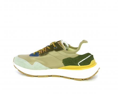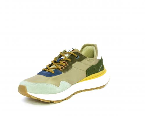 Sneakers con lacci, fondo in gomma, tomaia in tessuto con parti in suede colorate, sottopiede e fodera interna in tessuto traspirante, fusbet estraibile con memory foam per donare confort durante la camminata.