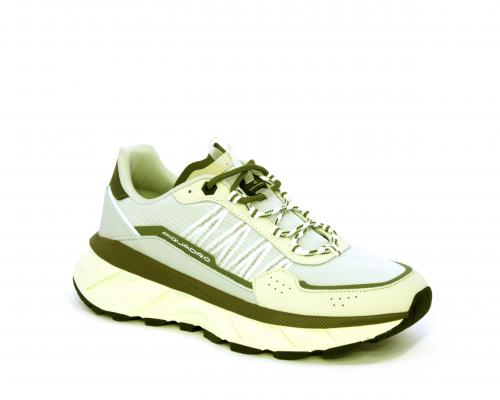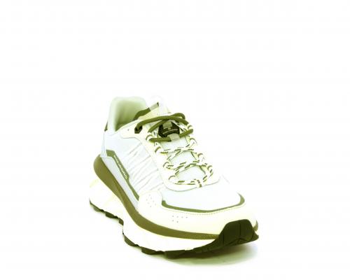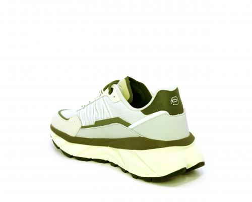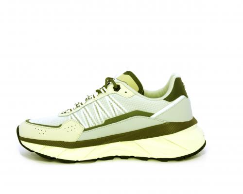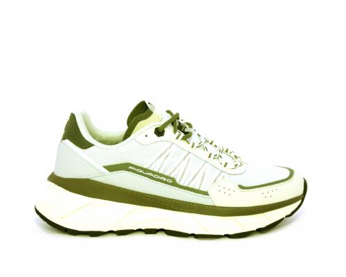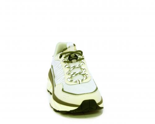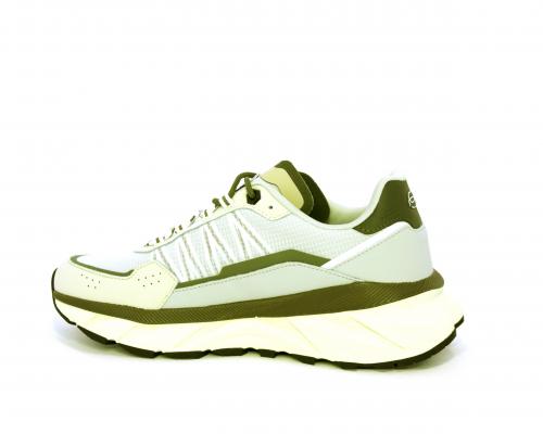 Sneakers con doppio laccio un laccio verde e un laccio bicolor di ricambio, fondo in gomma, tomaia in tessuto con parti in pelle, sottopiede e fodera interna in tessuto traspirante, fusbet estraibile con memory foam per donare confort durante la camminata.