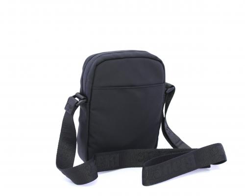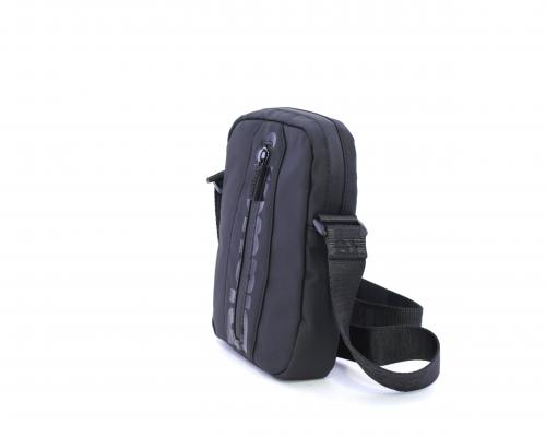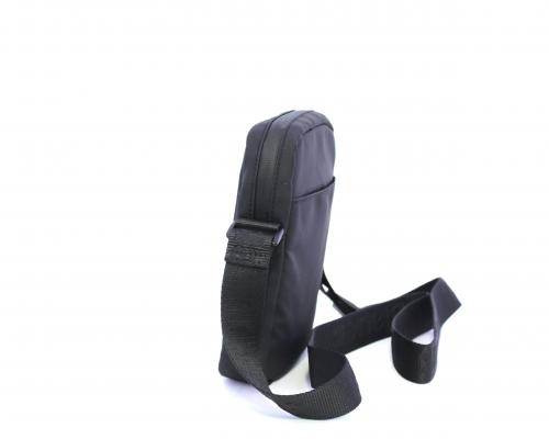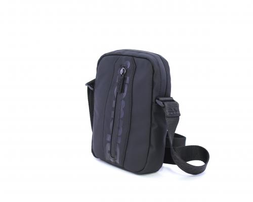 Tracolla in tessuto, taschino verticale nella parte anteriore con stampa con logo, chiusura generale con cerniera, tracolla regolabile in tessuto con logo inciso.