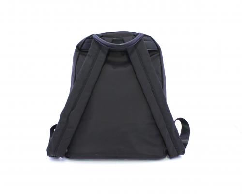 Zaino in tessuto con rifiniture in pelle e tracolle regolabili in tessuto, lo zaino è costituito da uno scomparto grande e due taschini nella parte anteriore uno più grande e uno più piccolo con logo con brillantini, chiusura generale della zaino con cerniera, fodera interna in tessuto e nel vano più grande all'interno c'è un taschino chiuso con zip.