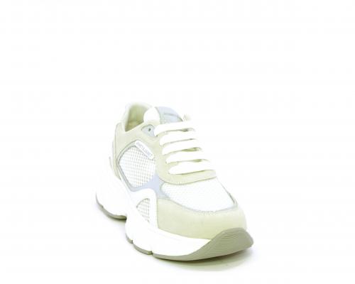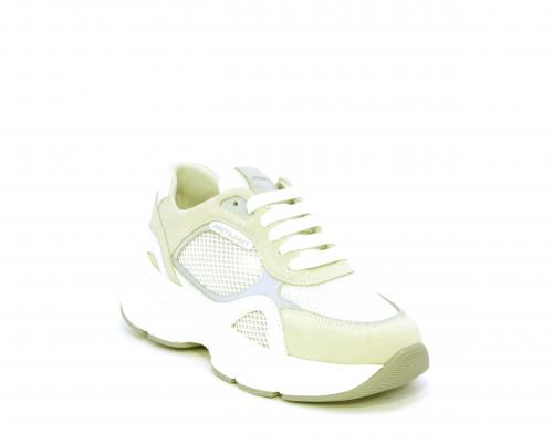 Sneakers con doppio laccio di ricambio, zeppa e plateaux in gomma bianca, tomaia in suede con parti in tessuto microforato, sottopiede in pelle, fodera interna in tessuto, fusbet estraibile con memory per donare confort durante la camminata.