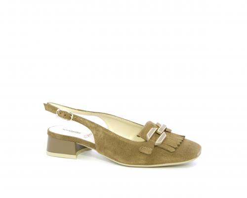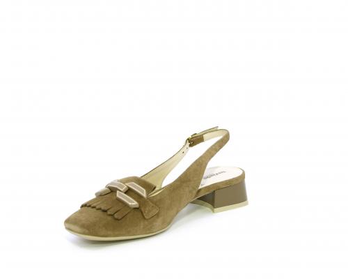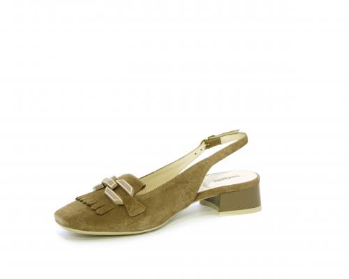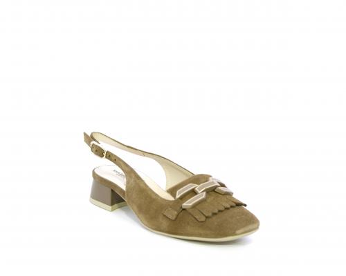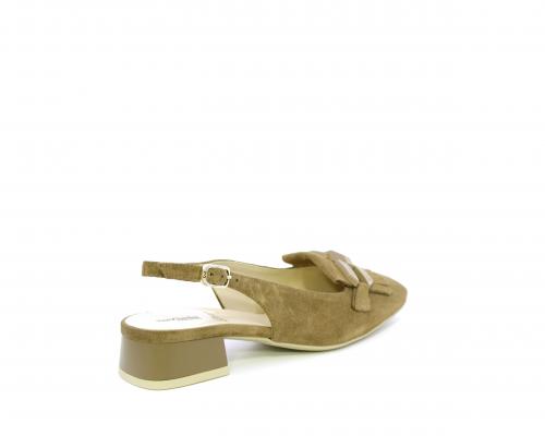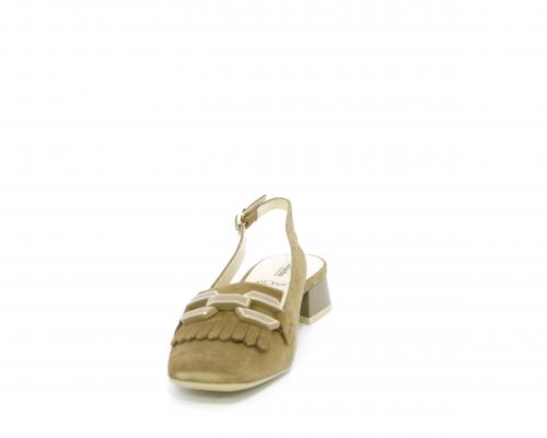 Scarpa modello chanel, fondo in gomma, tacco largo, tomaia in suede fibbia bicolor e lateralmente fibbia regolabile, sottopiede e fodera interna in pelle, fusbet dotato di memory ed elevato assorbimento degli urti donando confort e benessere.