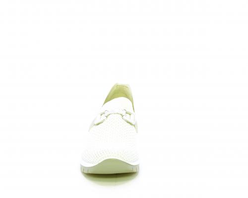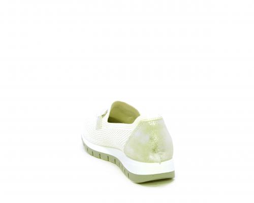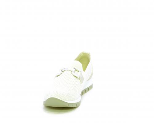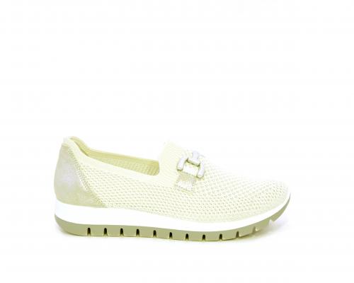 Sneakers senza lacci, fondo in gomma, tomaia in tessuto elasticizzato, sottopiede in pelle, fusbet estraibile.