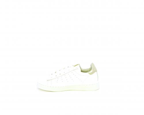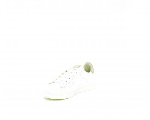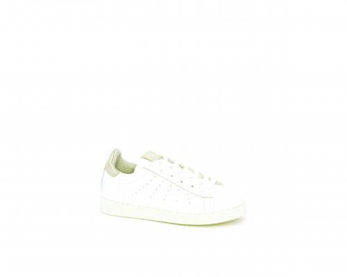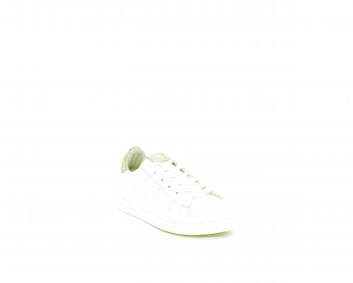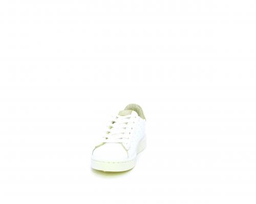 Sneakers con lacci, fondo in gomma, tomaia in pelle e dietro al tallone inserto in pelle color platino, sottopiede in pelle, fodera interna in pelle e tessuto, fusbet estraibile con memory .