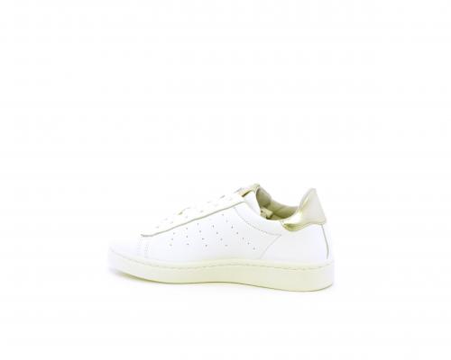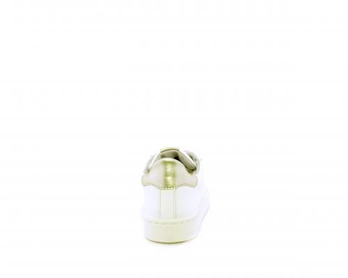 Sneakers con lacci, fondo in gomma, tomaia in pelle e dietro al tallone inserto in pelle color platino, sottopiede in pelle, fodera interna in pelle e tessuto, fusbet estraibile con memory .