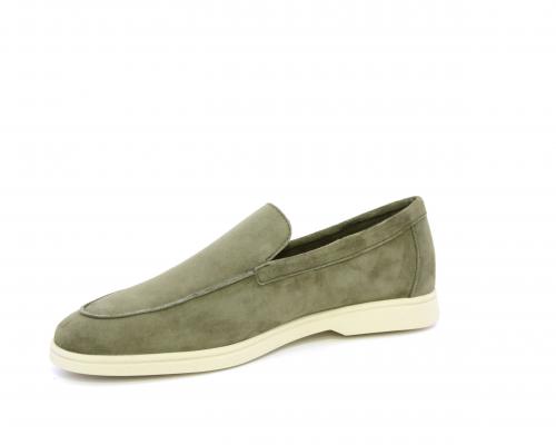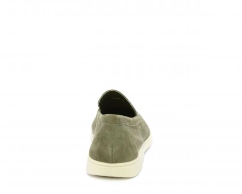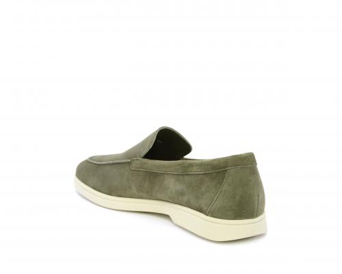 Mocassino fondo in gomma, tomaia in daino timo, sottopiede e fodera interna in pelle, fusbet estraibile con memory foam per donare confort durante la camminata.