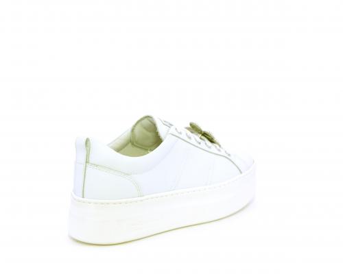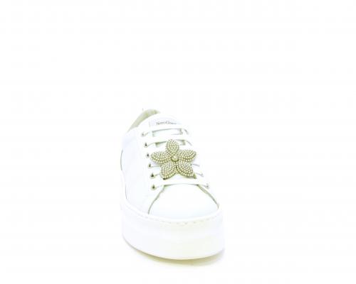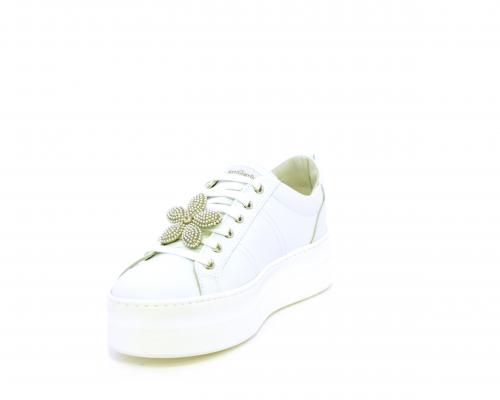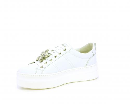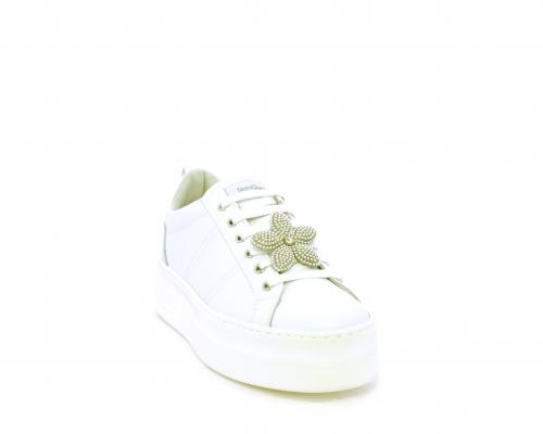 Sneakers con lacci, platform in gomma, tomaia in pelle con accessori removibili nei lacci, sottopiede e fodera interna in pelle, fusbet estraibile in poliuretano Dry-Go, che oltre a svolgere un'azione di assorbimento del sudore e rapida asciugatura mantenendo il piede sempre asciutto, adesso offre anche la funzione memory che modellandosi delicatamente al piede dona confort e benessere.