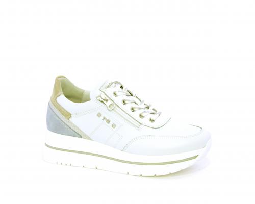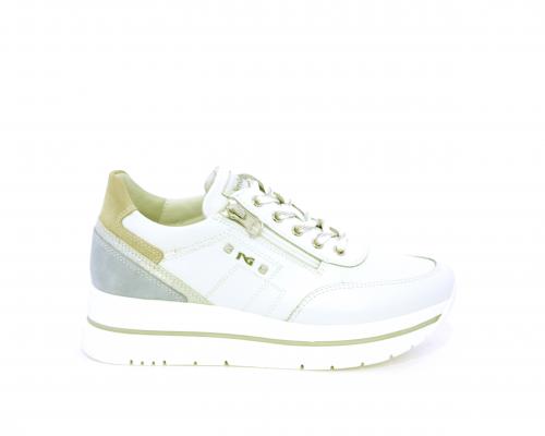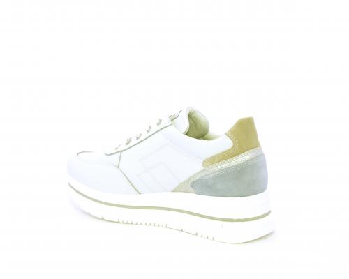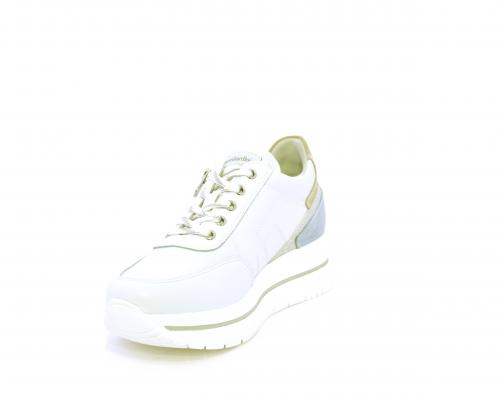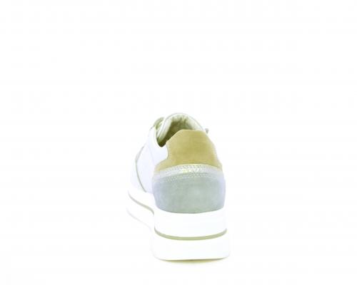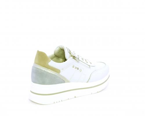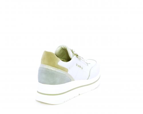 Sneakers con lacci e chiusura laterale per facilitare la calzata, zeppa e plateaux in gomma, tomaia in pelle con parte in suede colorata dietro altallone, sottopiede e fodera interna in pelle, fusbet estraibile in poliuretano Dry-Go, che oltre a svolgere azione di assorbimento del sudore e rapida asciugatura mantenendo il piede sempre asciutto, adesso offre anche la funzione memory che modellandosi delicatamente al piede dona confort e benessere.