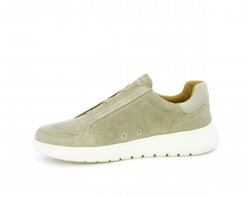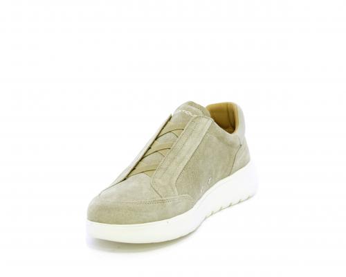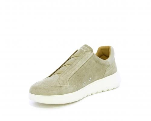 Sneakers senza lacci con elastico sul collo del piede, tomaia in suede, sottopiede e fodera interna in pelle, fusbet estraibile con memory per donare massimo confort durante la camminata ed elevata flessibilità .