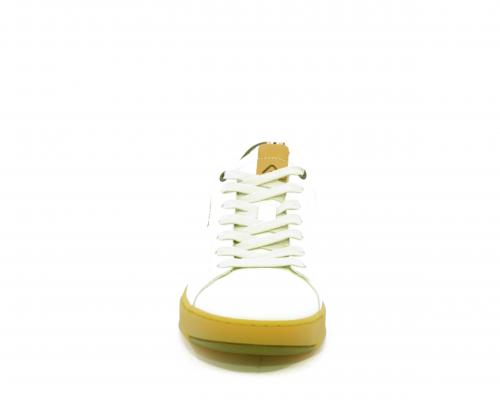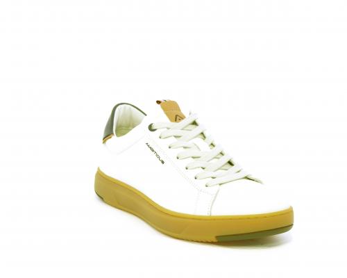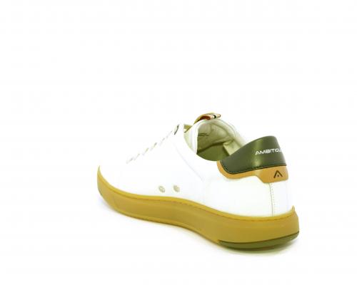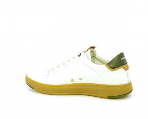 Sneakers con doppio laccio di ricambio, tomaia in pelle, fondo in gomma, sottopiede e fodera interna in pelle, sistema a doppio fusbet uno sotto più sottile e un secondo fusbet sopra in memory per donare confort e benessere durante la camminata.