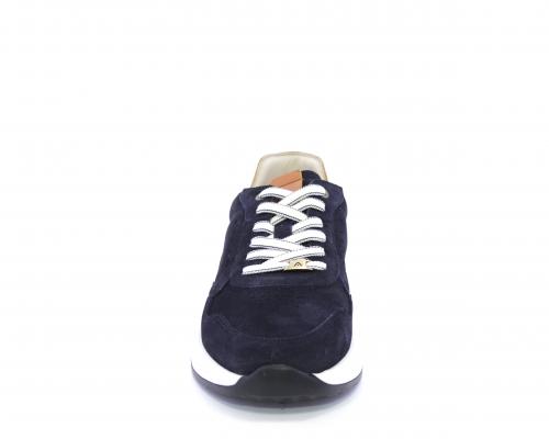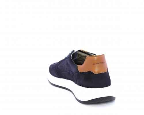 Sneakers con doppio laccio un paio bianco e un paio blu, tomaia in suede con rifinitura dietro al tallone in pelle, fondo in gomma, sottopiede e fodera interna in pelle, fusbet in memory per donare confort e benessere durante la camminata.