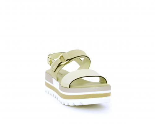 Sandalo con platform con due fascie e cinturino con fibbia, sottopiede e fodera in pelle, plantare morbido.