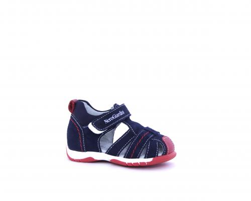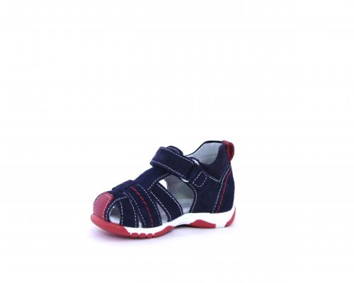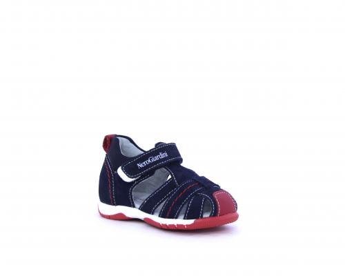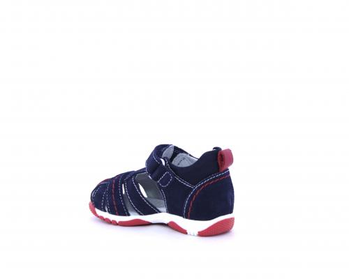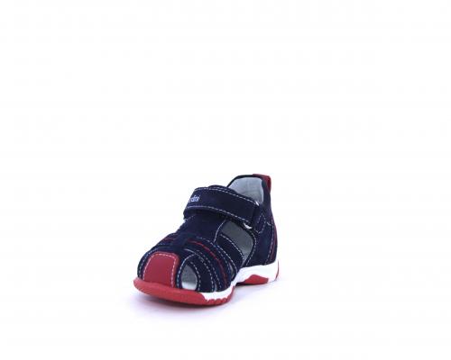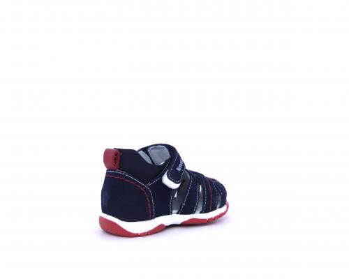 Sandalo primi passi chiuso in punta e al tallone con velcro, sottopiede e fodera in pelle, fusbet anatomico