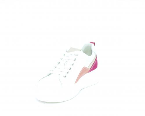 Sneakers allacciata in pelle con inserti colorati in nabuk; sottopiede e fodera interna in pelle, fusbet estraibille con sistema DryGo, che svolge una doppia azione, assorbe l'umidità quando la scarpa viene indossata e si asciuga rapidamente quando si toglie la calzatura.