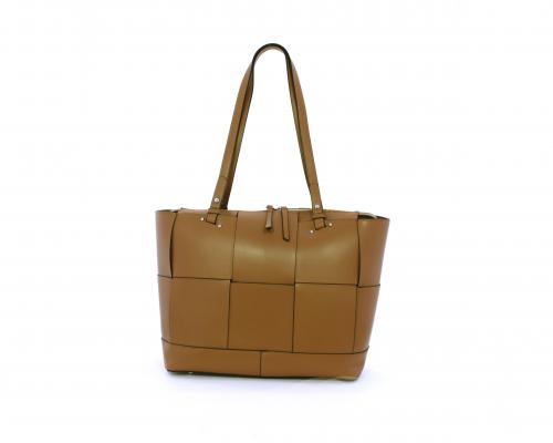 Borsa in pelle forma rettangolare, monospalla con doppio manico lungo in pelle, chiusura dell borsa tramite zip.