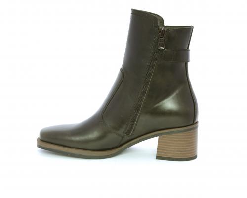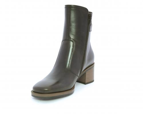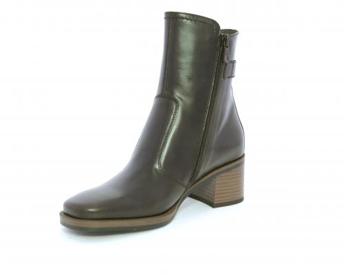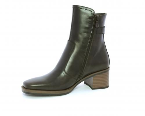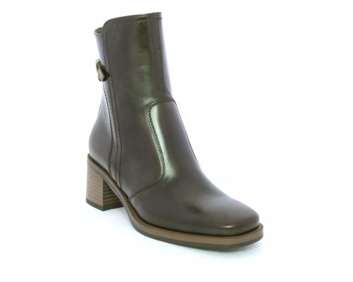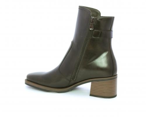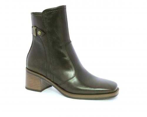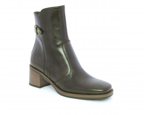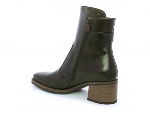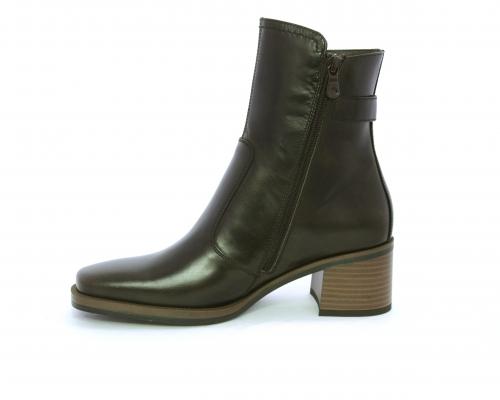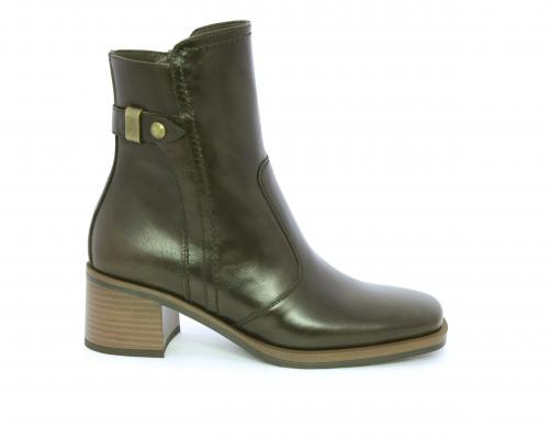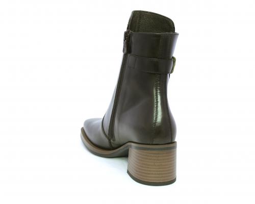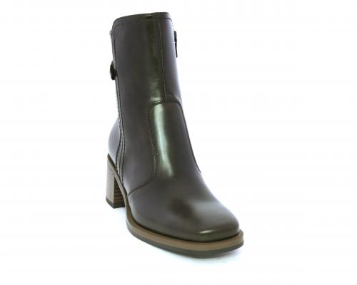 Tronchetto in pelle con tacco largo effetto legno, sottopiede e fodera interna in pelle, fusbet con memory.